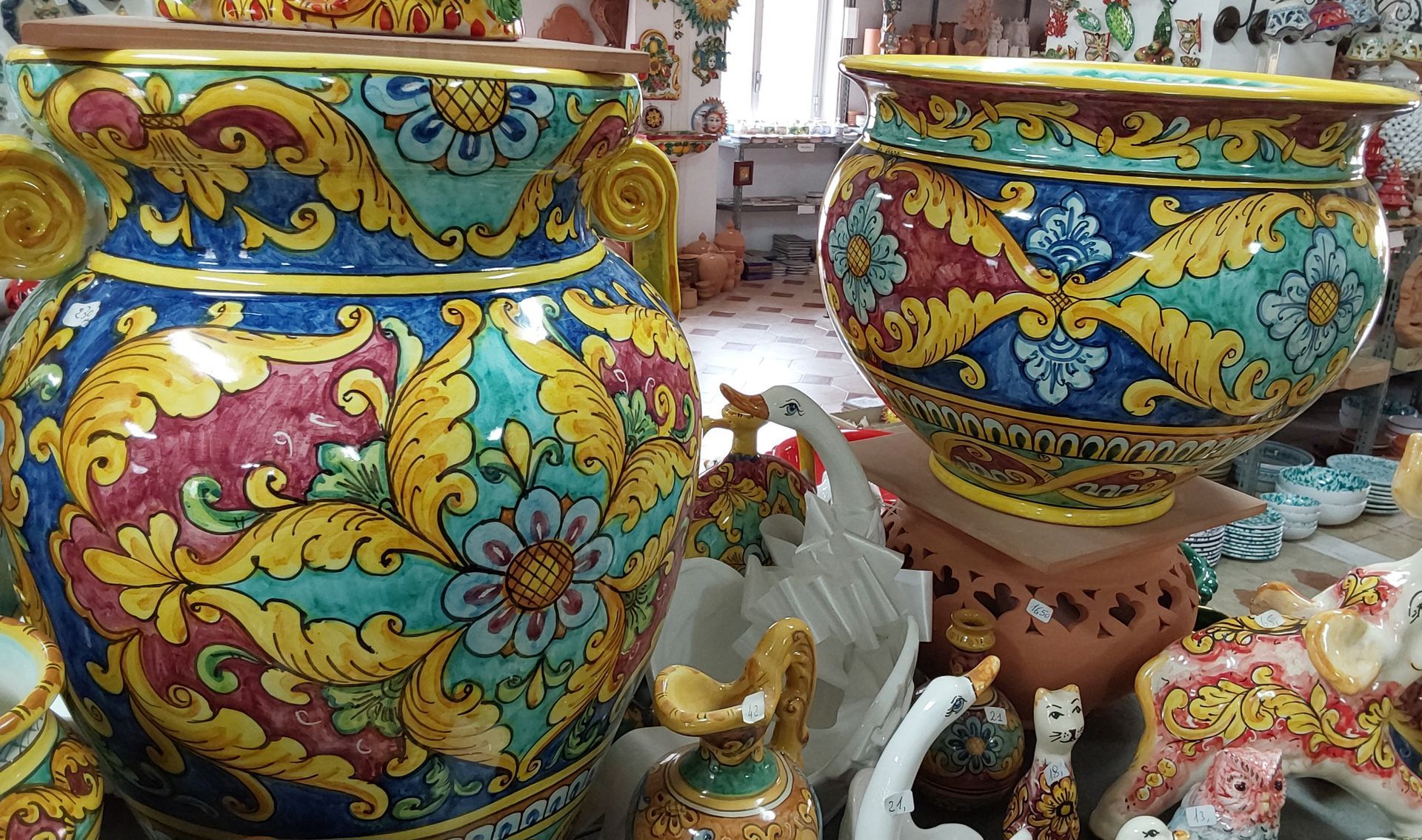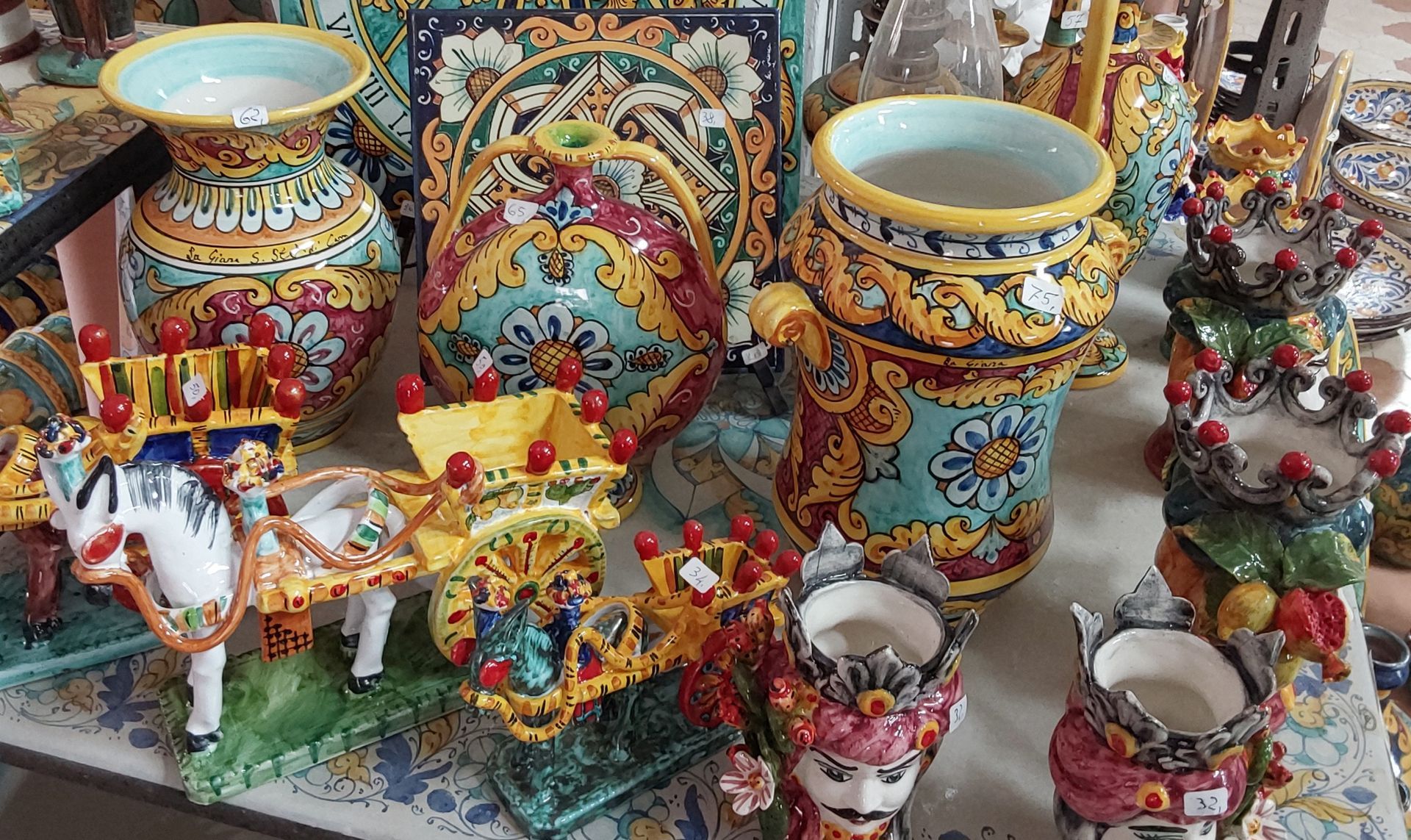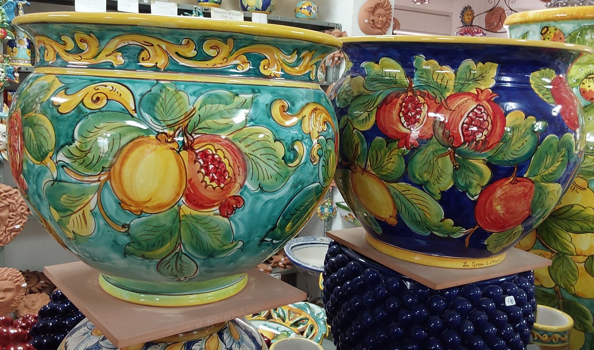 per il suo repertorio ricchissimo di forme, figure e colori. Ogni manufatto, curato con minuzia artigianale, si contraddistingue per la vivacità dei colori e per i tipici motivi decorativi, i quali arricchiscono le maioliche e mattonelle tradizionali siciliane, i servizi di piatti per il tè e il caffè, portaombrelli, piatti artistici, paralumi, bomboniere, vasi e fontane dallo stile barocco.