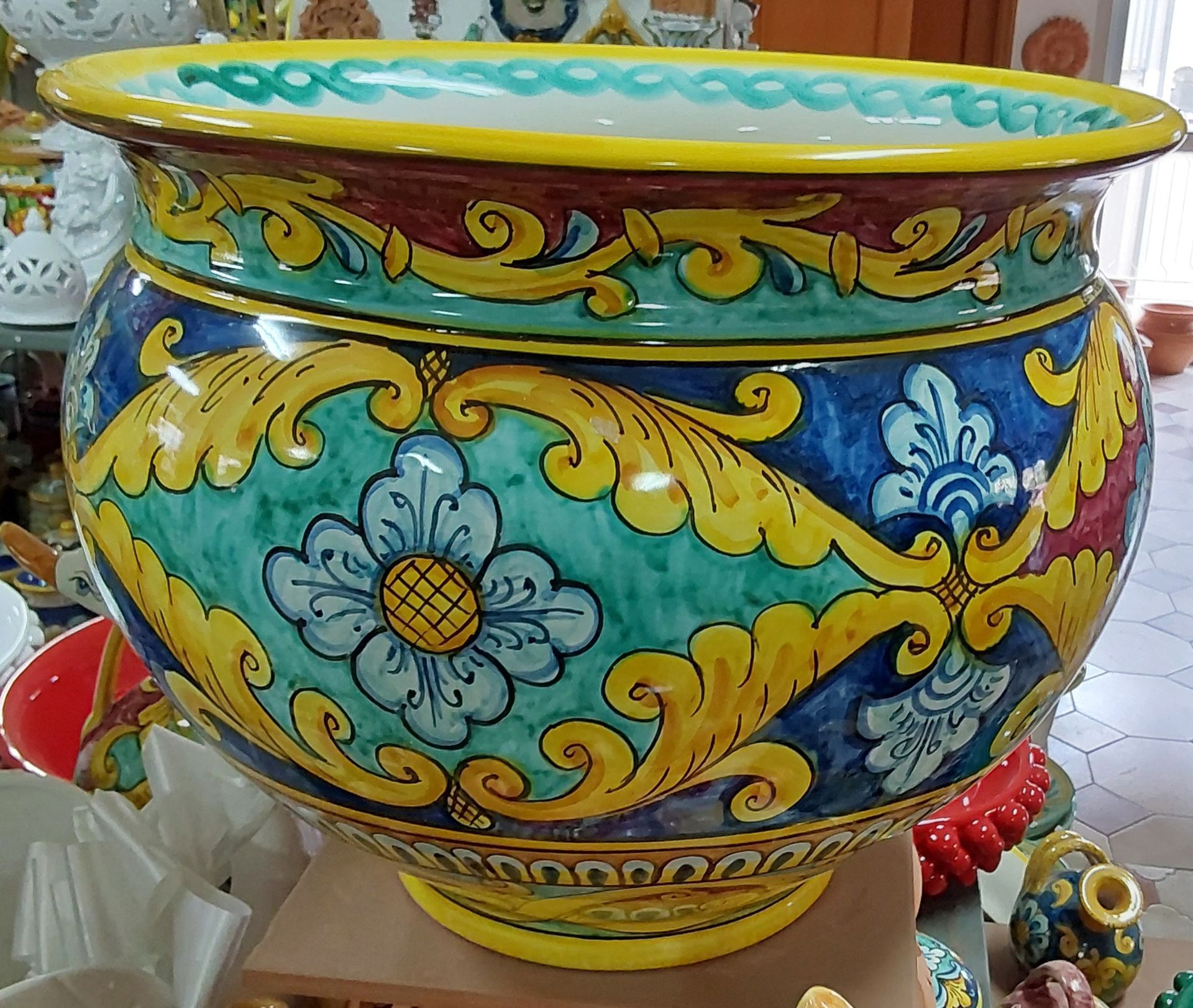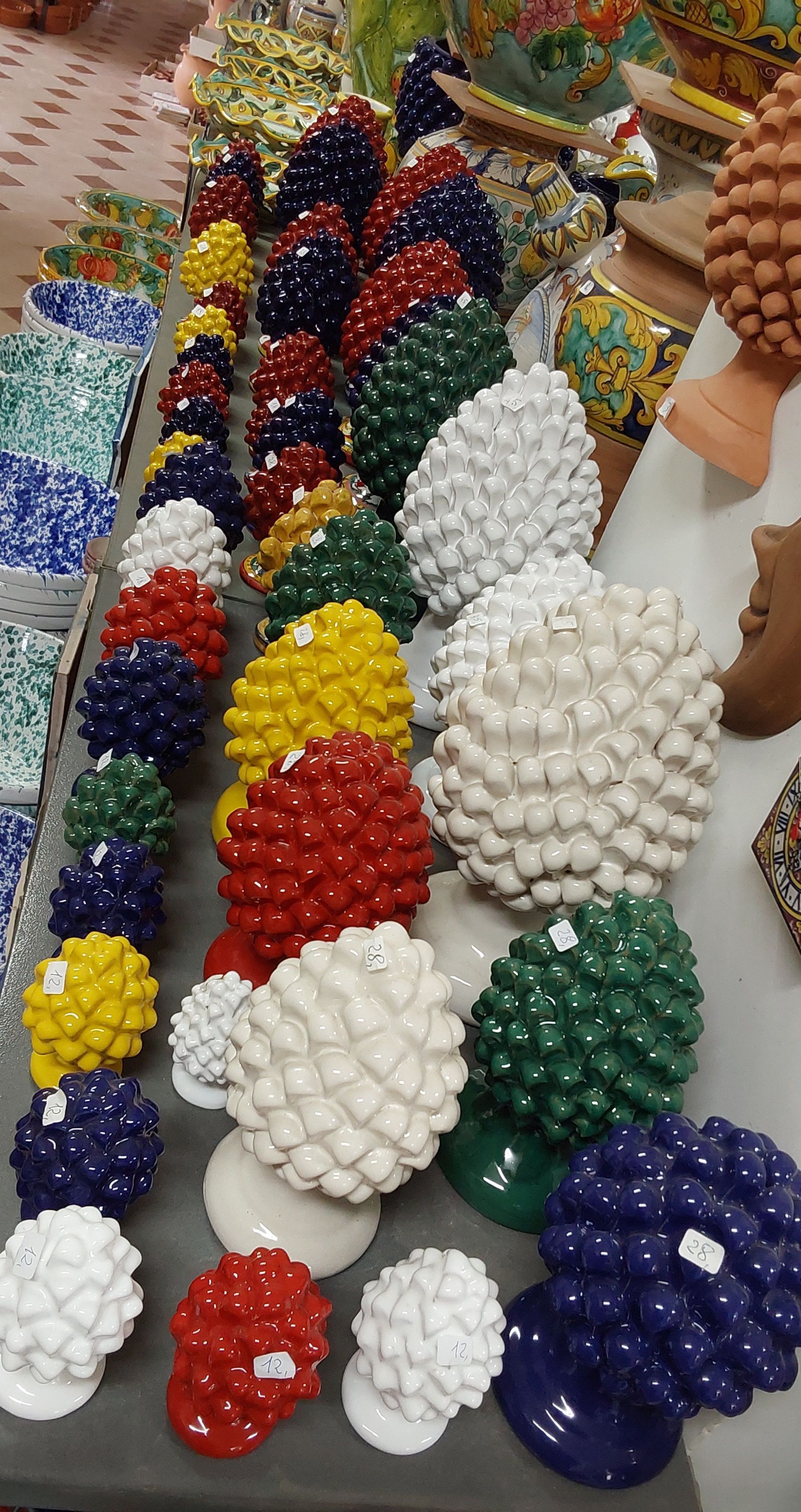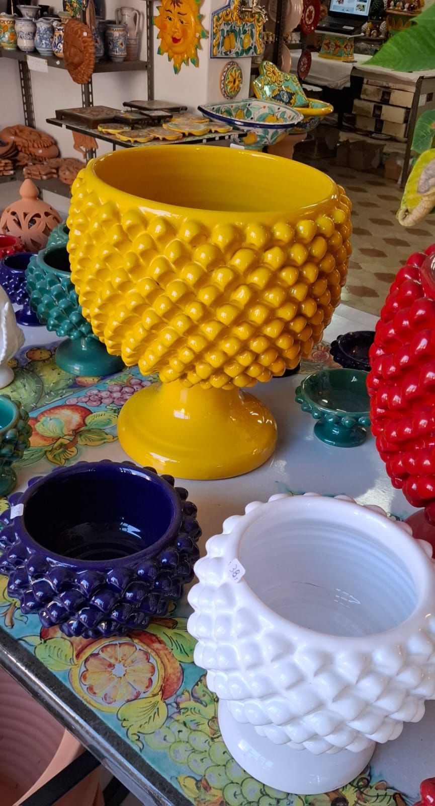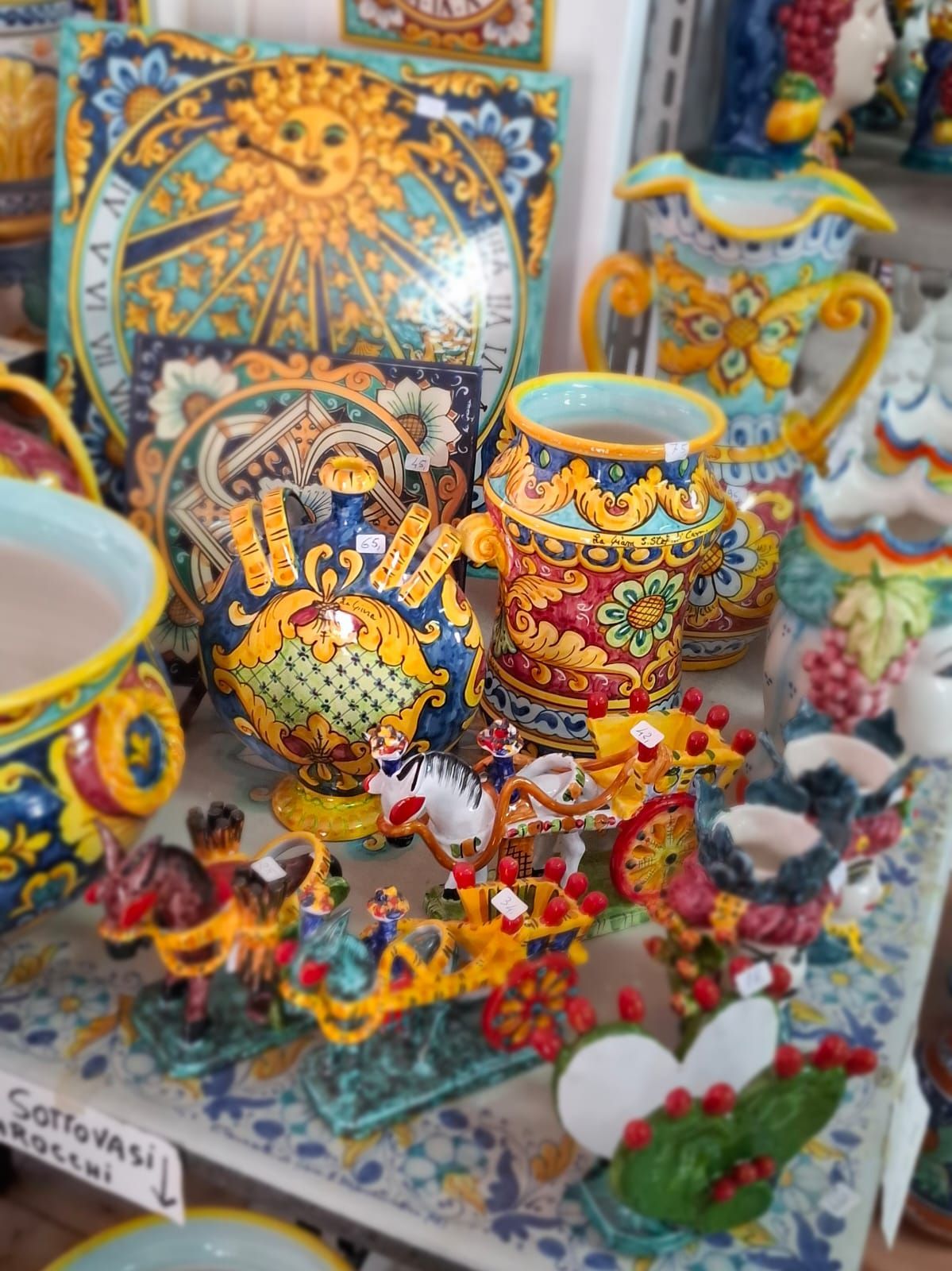 per il suo repertorio ricchissimo di forme, figure e colori. Ogni manufatto, curato con minuzia artigianale, si contraddistingue per la vivacità dei colori e per i tipici motivi decorativi, i quali arricchiscono le maioliche e mattonelle tradizionali siciliane, i servizi di piatti per il tè e il caffè, portaombrelli, piatti artistici, paralumi, bomboniere, vasi e fontane dallo stile barocco.